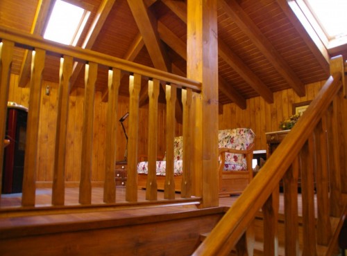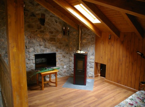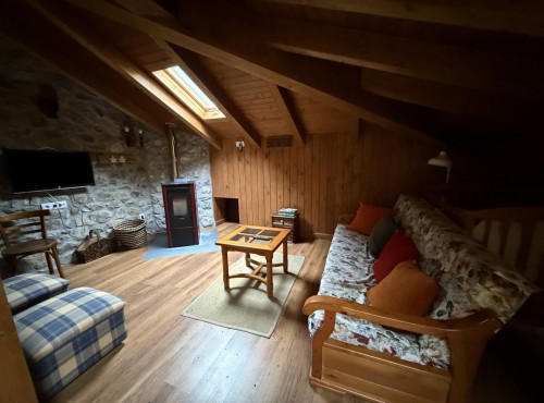 La calidez de la casa te envolverá con su calefacción en todas las estancias y una encantadora chimenea de pellet que añade un toque acogedor en las noches frescas. El salón, con su impresionante buhardilla revestida de piedra y madera, ofrece un espacio perfecto para relajarte. A través de sus lucernas, podrás disfrutar de unas vistas privilegiadas a los Picos de Europa